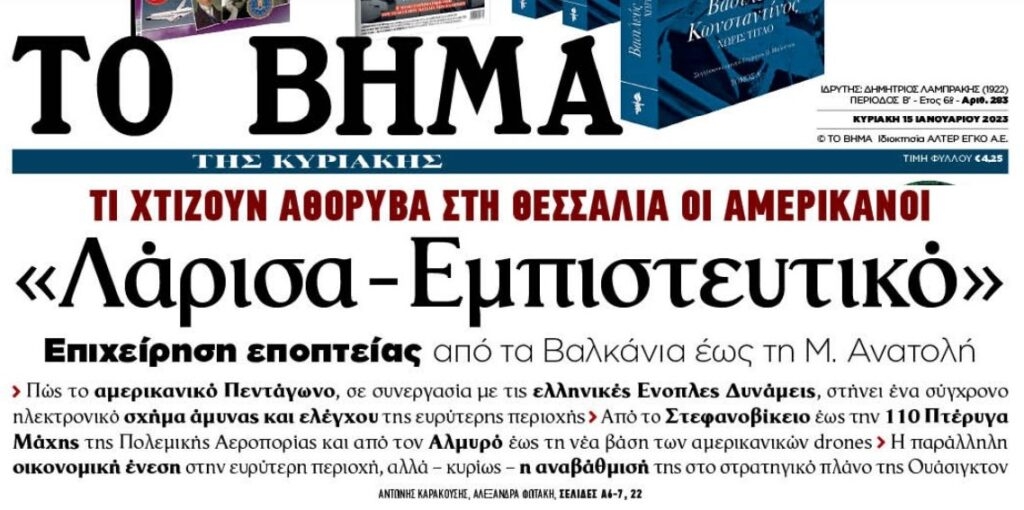 Amerikalılar Yunanistan’ın Teselya bölgesi Larissa (Yenişehir) kentine sessiz sedasız Balkanlar’dan Orta Doğu’ya kadar elektronik harp gözetim kontrol savunma merkezi kuruyor. Yunan “To Vima” gazetesi bunu doğruluyor.